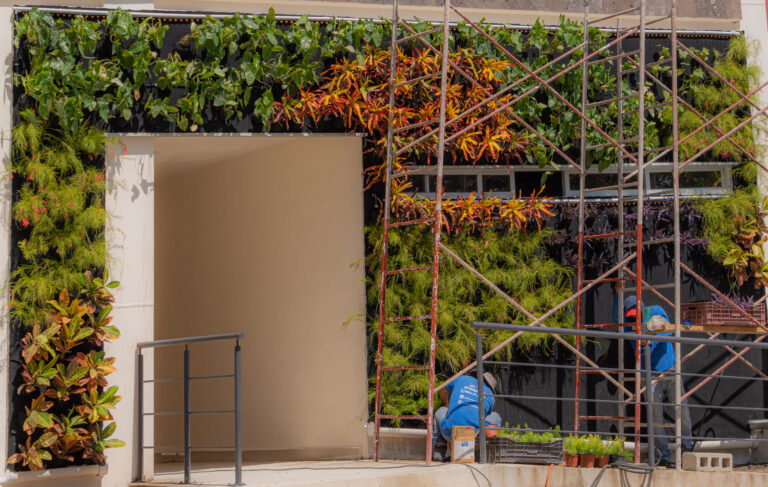 Los jardines verticales tambien son una opción para sumar área verde y/o área permeable para aprovechar el área horizontal de los proyectos de desarrollo inmobiliario. Un ejemplo de este concepto se puede ver en los trabajos realizados en la Universidad Vizcaya de las Américas Campus Mérida.